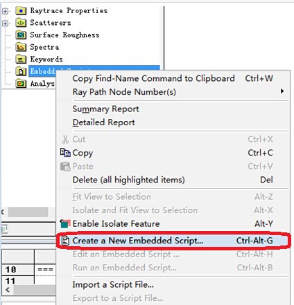 步驟3:創(chuàng)建一個(gè)折射率隨溫度變化20k后的折射率變化模型,我們利用FRED軟件自帶的VB腳本實(shí)現(xiàn)此功能。在樹(shù)形文件夾選擇Embedded Scripts,右鍵選擇Create a New Embedded Scrips,注意刪除腳本編輯器里面的所有內(nèi)容,然后粘貼如下的程序到此編輯器中。