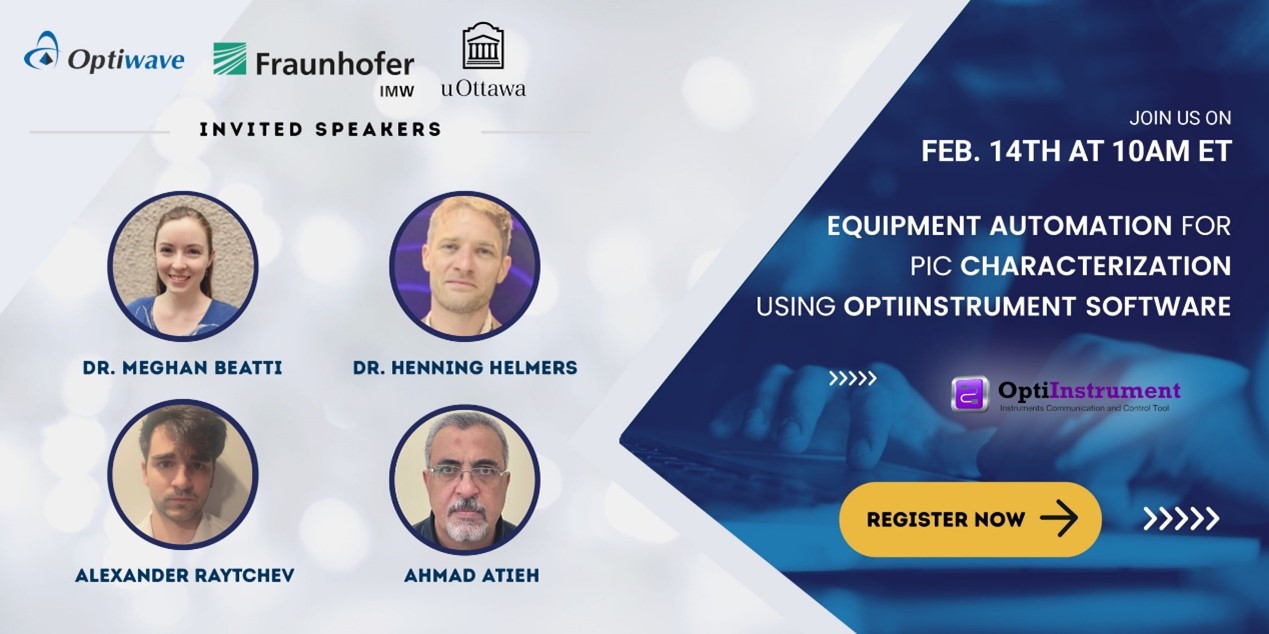 了解使用OptiInstrument軟件收集、處理和繪制數(shù)據(jù)是多么簡單便捷,并獲得關(guān)于改進(jìn)PIC表征過程的有價(jià)值見解。不要錯(cuò)過這個(gè)機(jī)會(huì),把你的PIC特性提升到一個(gè)新的水平。現(xiàn)在就注冊(cè)參加Optiwave OptiInstrument網(wǎng)絡(luò)研討會(huì)吧!