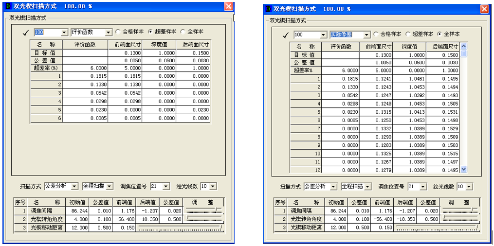圖11.雙光楔三維立體深度掃描系統(tǒng)公差合格率數(shù)據(jù)及曲線(xiàn)圖