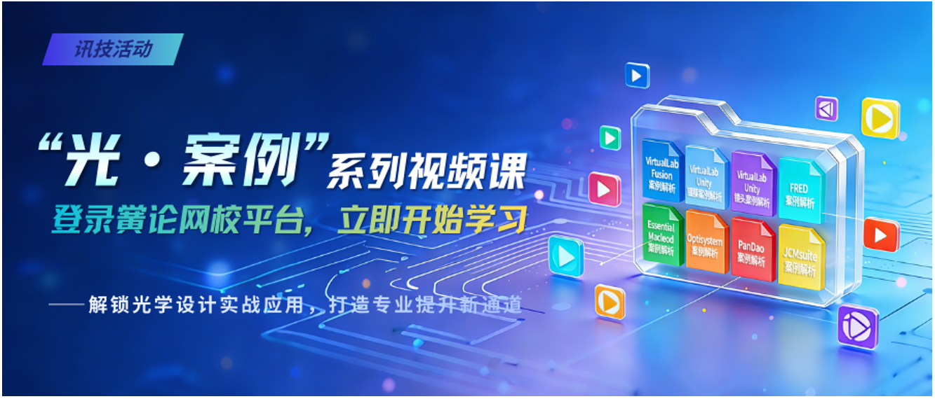 訊技光電2026年度全新推出的「光·案例」視頻課程系列是圍繞“光”主題構(gòu)建的多維立體學(xué)習(xí)平臺(tái)中又一重要組成部分。依托黌論教育網(wǎng)校平臺(tái),以視頻課程形式呈現(xiàn),「光·案例」系列聚焦VirtualLab、FRED、Essential Macleod、Optisystem、PanDao、JCMsuite等業(yè)界主流光學(xué)軟件在實(shí)際工程中的應(yīng)用實(shí)踐,通過系統(tǒng)化、場(chǎng)景化的真實(shí)案例解析,助力每一位光學(xué)從業(yè)者從理論走向?qū)崙?zhàn),從工具使用者成長(zhǎng)為解決方案設(shè)計(jì)者。