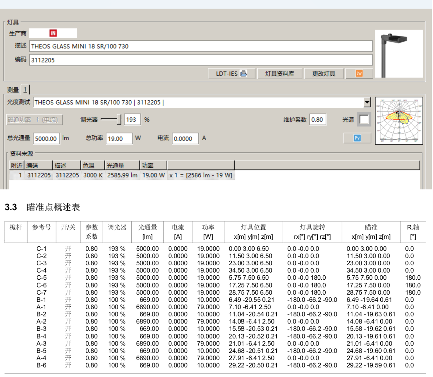 設計場所面積合理,其中布置燈具擺放合理,符合照明標準。