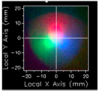 FRED可以設(shè)置雙折射材料、極化光源和偏振片等,并且可以模擬偏振干涉現(xiàn)象。如下圖是紅寶石激光經(jīng)過雙折射材料后形成的典型的偏振干涉圖樣。