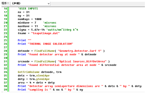支持VB腳本編程,包含非常多的命令語言?芍С謩(chuàng)建和修改幾何模型、光源、鍍膜、材料、散射模型以及進(jìn)行光線追跡和計(jì)算分析,實(shí)現(xiàn)功能擴(kuò)展。