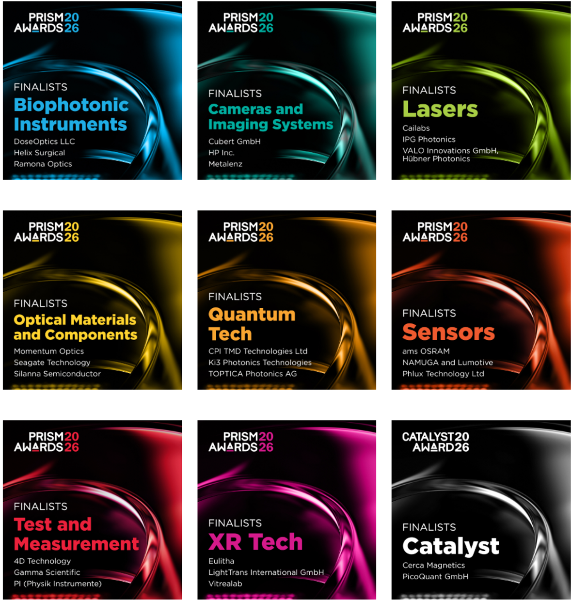 領(lǐng)先的新型光子學技術(shù)已入選2026年度SPIE棱鏡獎最終角逐。來自新興創(chuàng)新企業(yè)及行業(yè)領(lǐng)軍公司的24款產(chǎn)品分八個類別脫穎而出,將于2026年1月21日在SPIE西部光子學大會的頒獎盛典上接受表彰。