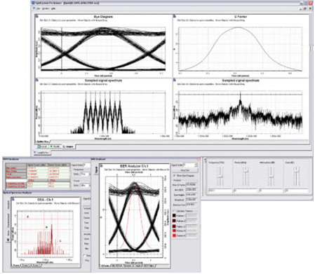 用戶可使用高級可視化工具生成OSA光譜,信號啁啾,可視化視圖,偏振態(tài),星座圖等。同樣包含了WDM分析工具,如信號功率列表,增益,噪聲圖以及每個通道的OSNR。