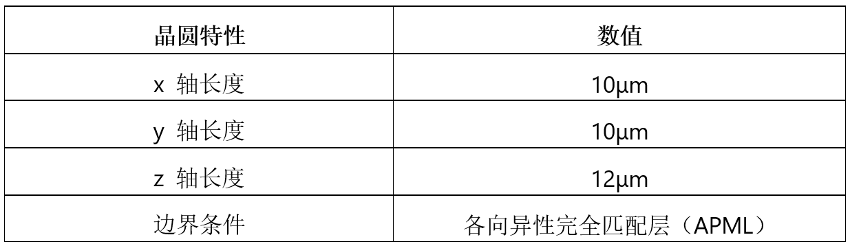 所有仿真將保持相同的通用晶圓、光源和離散化參數(shù),具體如下文所述。每種透鏡示例的詳細(xì)信息將在對(duì)應(yīng)章節(jié)中說明。