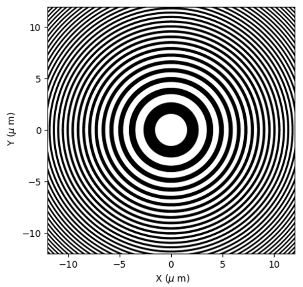 圖1.波長(zhǎng)λ=0.6 μm,焦距f=8 μm的菲涅耳波帶片。