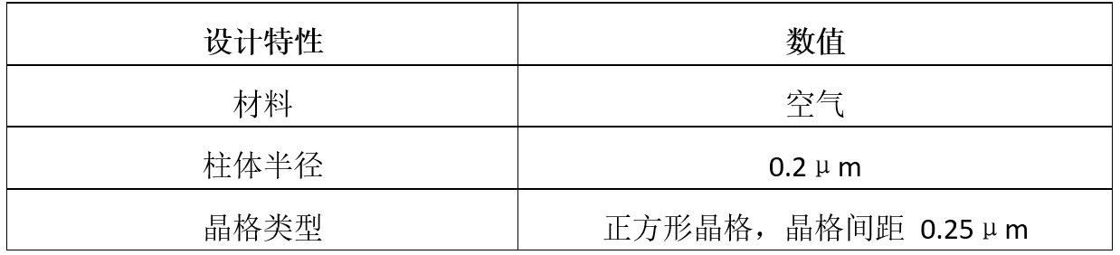 超透鏡通過在仿真域上構(gòu)建正方形晶格實(shí)現(xiàn)。利用公式判斷每個(gè)晶格節(jié)點(diǎn)所在區(qū)域?yàn)楦咄高^率區(qū)還是低透過率區(qū):若為高透過率區(qū),則制作空氣孔(采用空氣材質(zhì)的光纖波導(dǎo));若為低透過率區(qū),則不制作空氣孔。