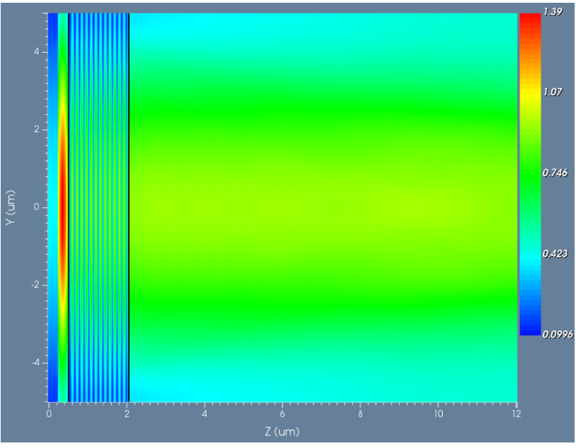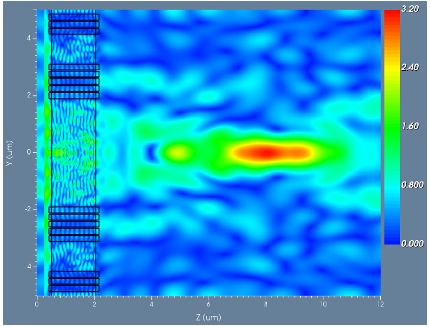 圖7.超透鏡在YZ平面的 Ey 場(chǎng)