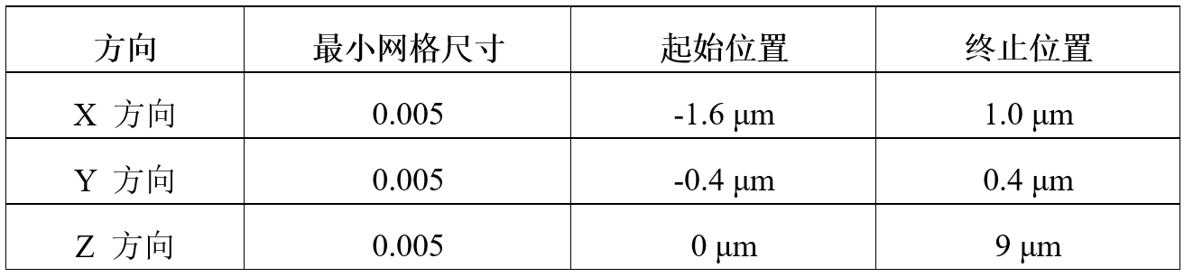 硅(Si)和二氧化硅(SiO₂)的折射率分別取3.47 和1.44;邊界條件設(shè)置為 x、y、z 方向的各向異性完美匹配層(APML);仿真區(qū)域的晶圓尺寸為:長度9μm,寬度6μm。