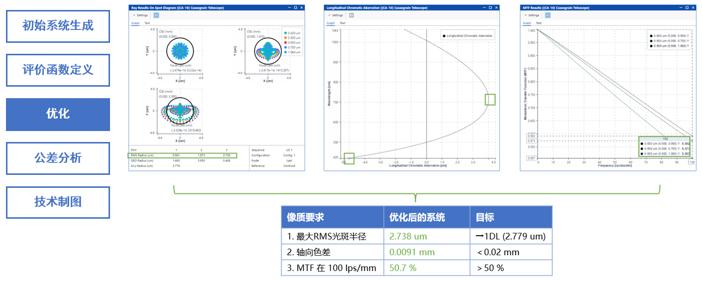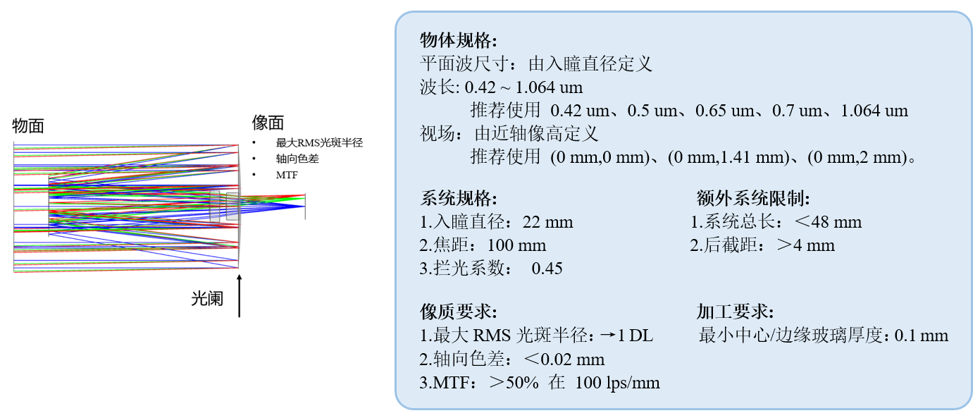設(shè)計(jì)結(jié)果如下,像質(zhì),系統(tǒng)規(guī)格、額外系統(tǒng)限制以及加工要求均滿足預(yù)期設(shè)計(jì)目標(biāo)。