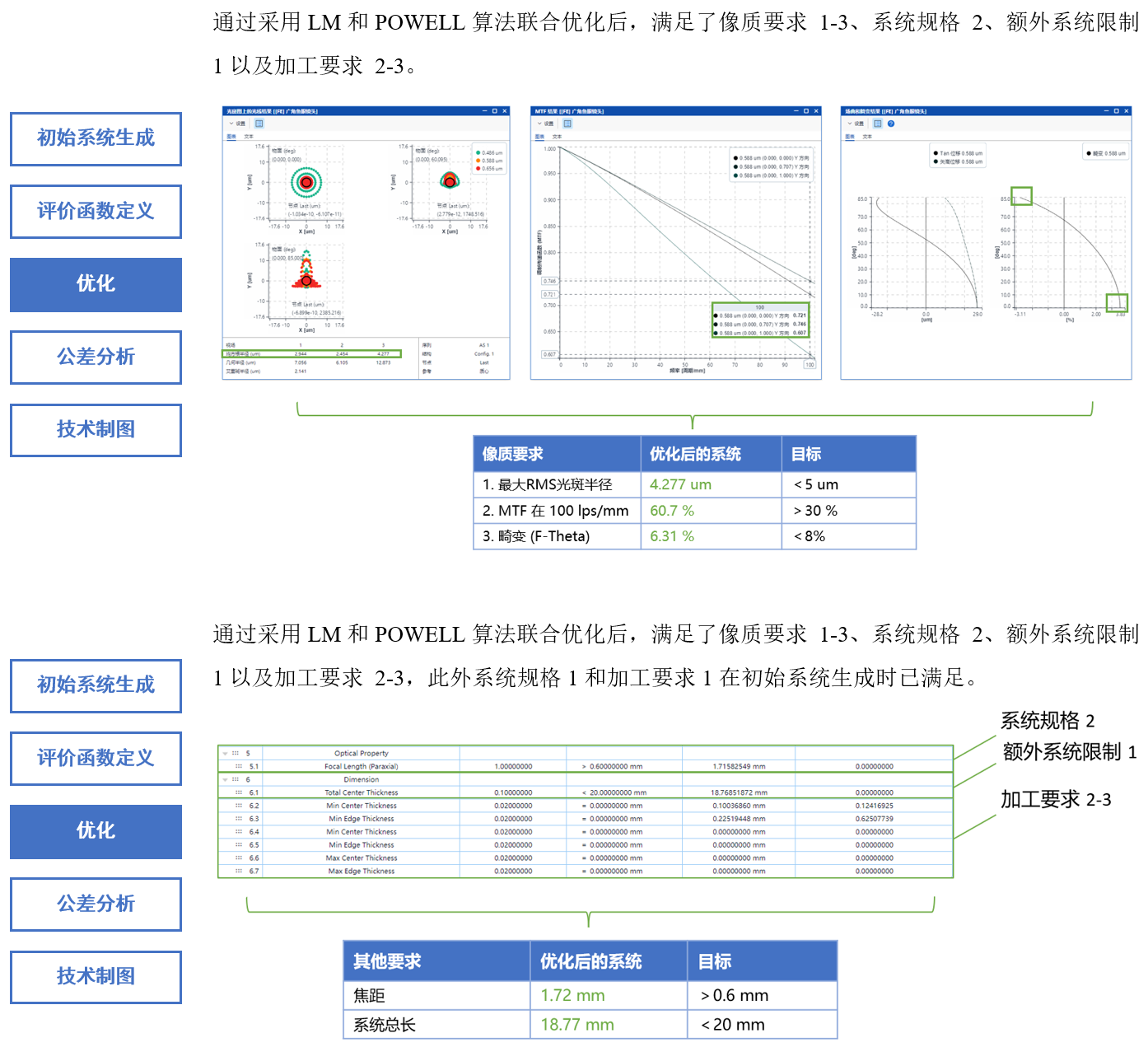 設(shè)計(jì)結(jié)果如下,像質(zhì),系統(tǒng)規(guī)格、額外系統(tǒng)限制以及加工要求均滿足預(yù)期設(shè)計(jì)目標(biāo)。