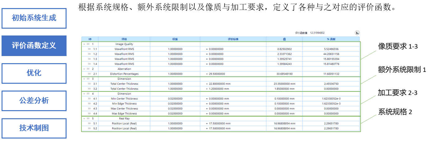 設(shè)計(jì)結(jié)果如下,像質(zhì),系統(tǒng)規(guī)格、額外系統(tǒng)限制以及加工要求均滿足預(yù)期設(shè)計(jì)目標(biāo)。