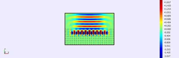 諧振腔的共振頻率和品質(zhì)因子,除受腔長度影響外,還可能取決于腔表面的褶皺程度。本例在光子晶體諧振腔的表面,設(shè)計了波浪形的激光工作物質(zhì),組成垂直腔激光器。它可以在單模狀態(tài)下穩(wěn)定工作,并具有平坦的波前。