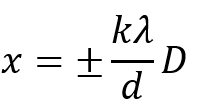 屏上各條明紋中心的位置為: