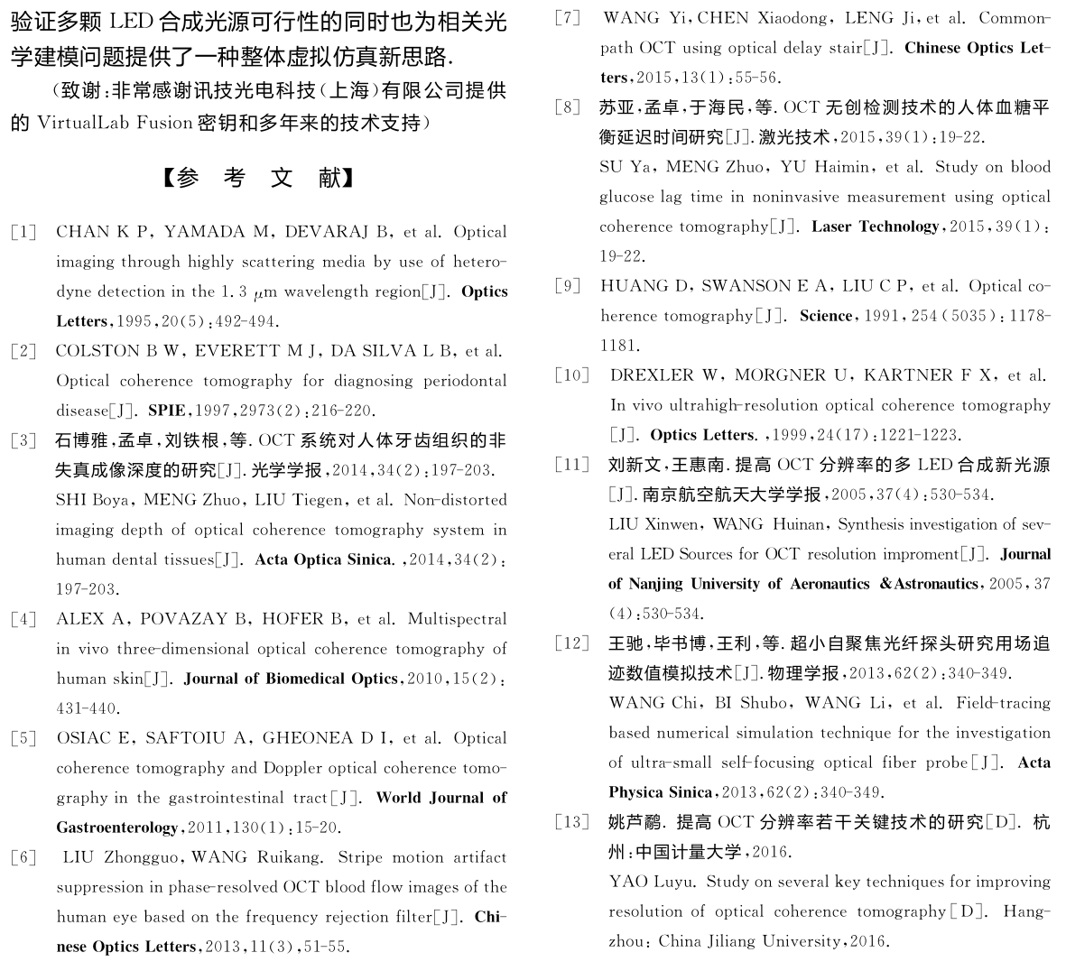 關(guān)鍵詞:光學(xué)相干層析技術(shù);VirtualLab Fusion軟件;發(fā)光二極管;合成光源